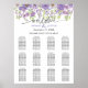 Wedding reception seating plan designed with pretty hand painted watercolor flowers in purple and lilac.