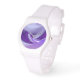 I only have one complaint. I ordered the watch with clear case and strap, and what was sent was white case and strap. I'm going to keep it because 1) it looks very nice in white, and 2) it would take too long to get a replacement made and sent in time for my occasion. Aside from the mix up with the color, the watch does look very good in white. The purple dial is actually sparkly which did not show in the online images. That was a nice surprise. If you like Swatch watches this is very similar to those. It's 33.6mm in diameter, 10.5mm thick, and 40.6mm lug to lug. Stainless steel case back says 3ATM/30m WR, so no swimming or showering or submerging this one. If you like Woodstock, this is a great choice.