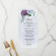 Purple dusty blue flowers green leaves wedding menu