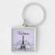 Purple Eiffel Tower Flourish Square Keychain