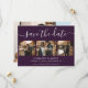 Create an elegant purple wedding save-the-date card featuring a modern script font, easily customizable with your photos, wedding details, and a wedding website if desired.