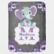 Perfect for a baby girl! customizable with name and initial, rustic purple elephant baby blanket for baby shower, baptism etc.