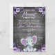 Purple Elephant Baby shower invitation rustic