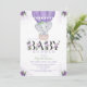 Purple Elephant Hot Air Balloon Floral Baby Shower Invitation