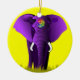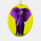 Purple elephant with OM symbol stands on grass with a yellow background. Never underestimate an elephant. Some believe they are a symbol of good fortune
