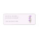 Return Address label with elegant bouquet from purple eustomas flowers and light green leaves, pastel colored spring or summer softness romantic floral eustomas rose flowers. Botanical digital watercolor painting. Floral blossom botany Return Address label. Purple Eustomas Collection.