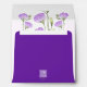 Wedding envelope with elegant bouquet from purple eustomas flowers and light green leaves, pastel colored spring or summer softness romantic floral eustomas rose flowers. Botanical digital watercolor painting. Floral blossom botany Wedding envelope. Purple Eustomas Collection.
