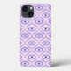 Trippy iPhone case with a weird eye pattern in pastel purple and pink colors. This fun psychedelic pattern resembles retro modern mid-century style due to its geometric shapes.