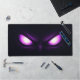This dramatic mouse pad design features a pair of vivid, glowing purple eyes set against a deep black background. The stylized gaze delivers a sense of mystery and intensity—perfect for gamers, creatives, or fans of bold workspace aesthetics. Its large rectangular size and premium quality make it ideal for tech setups needing both flair and function. The angular glare effect adds a sleek, cyber-inspired twist.