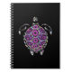 Top view of a sea tortoise, the shell pieces was done in a purple factional style, and the out line of the shell, flippers, and head were made of a rainbow color scheme.