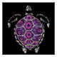 Top view of a sea tortoise, the shell pieces was done in a purple factional style, and the out line of the shell, flippers, and head were made of a rainbow color scheme.