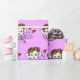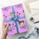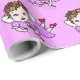 A beautiful hand drawn whimsical folk art style fairy with a purple dress gift wrap for a little girl's birthday.