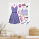 Decorate your dressing room or bedroom with this elegant purple fashion set wall art poster. This detailed flat lay illustration captures the essence of a modern wardrobe with its iconic polka dot dress, designer accessories, and beauty products. The sophisticated lavender and magenta color scheme adds a pop of style to any office or vanity area. Printed with high quality ink, this fashion-themed poster is an excellent gift for aspiring stylists, beauty influencers, or anyone who loves chic interior decor.
