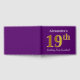 This guest book design features the ordinal number "19th" with a faux gold-like appearance. It also features a personalized name, and a purple colored background. It could be used at a party for somebody celebrating their nineteenth birthday. [~Z0000057]
