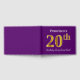 This guest book design features the ordinal number "20th" with a faux gold-like appearance. It also features a custom name, and a purple colored background. It could be used at a party for somebody celebrating their twentieth birthday. [~Z0000057]