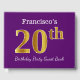 Purple, Faux Gold 20th Birthday Party; Custom Name Guest Book