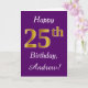 Purple, Faux Gold 25th Birthday + Custom Name Card