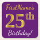 Purple, Faux Gold 25th Birthday + Custom Name Square Paper Coaster