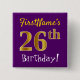 Purple, Faux Gold 26th Birthday, With Custom Name Button