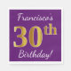 This simple paper napkin design features a message like "Francisco’s 30th Birthday!", with the "30th" having a faux gold-like appearance, on a purple colored background. The name can be customized. It could be used at a birthday party for somebody who is celebrating their thirtieth birthday. [~Z0000085]