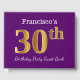 Purple, Faux Gold 30th Birthday Party; Custom Name Guest Book
