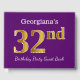 Purple, Faux Gold 32nd Birthday Party; Custom Name Guest Book