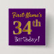 Purple, Faux Gold 34th Birthday, With Custom Name Button