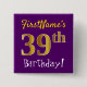 Purple, Faux Gold 39th Birthday, With Custom Name Button