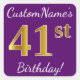 Purple, Faux Gold 41st Birthday + Custom Name Square Sticker
