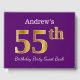 Purple, Faux Gold 55th Birthday Party; Custom Name Guest Book