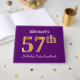 This guest book design features the ordinal number "57th" with a faux/imitation gold-like appearance. It also features a customized name, and a purple colored background. It could be used at a party for somebody celebrating their fifty seventh birthday. [~Z0000057]