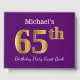 Purple, Faux Gold 65th Birthday Party; Custom Name Guest Book