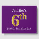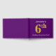 This guest book design features the ordinal number "6th" with a faux gold-like appearance. It also features a personalized name, and a purple colored background. It could be used at a party for somebody celebrating their sixth birthday. [~Z0000057]