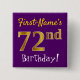 Purple, Faux Gold 72nd Birthday, With Custom Name Button