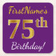 Purple, Faux Gold 75th Birthday + Custom Name Square Paper Coaster