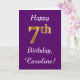 This simple birthday card design features the message "Happy 7th Birthday", with the "7th" having a faux gold-like appearance. It also features a personalized name, and a purple background. It could be given to somebody who is celebrating their seventh birthday.