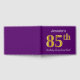 This guest book design features the ordinal number "85th" with a faux gold-like appearance. It also features a custom name, and a purple colored background. It could be used at a party for somebody celebrating their eighty fifth birthday. [~Z0000057]