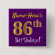 Purple, Faux Gold 86th Birthday, With Custom Name Pinback Button