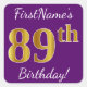 Purple, Faux Gold 89th Birthday + Custom Name Square Sticker