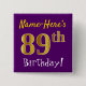 Purple, Faux Gold 89th Birthday, With Custom Name Pinback Button