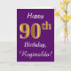 Purple, Faux Gold 90th Birthday + Custom Name Card