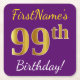 Purple, Faux Gold 99th Birthday + Custom Name Square Paper Coaster