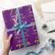 This wrapping paper design features a message like "HAPPY 77th BIRTHDAY", with the "77th" having a faux/imitation gold appearance. It also features a customizable name, and a purple colored background. It could perhaps be used when wrapping gifts being given for somebody’s seventy seventh birthday. [~Z0000134]