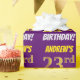 This wrapping paper design features a message like "ANDREW’S 23rd BIRTHDAY!", with the "23rd" having a faux/imitation gold-like color appearance, and with the name and "BIRTHDAY" in a fun, bold font. The name can be customized, and the background is colored purple. Wrapping paper like this could perhaps be used when wrapping birthday gifts being given to somebody in celebration of their twenty third birthday. [~Z0000206]