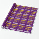This wrapping paper design features a message like "FIRSTNAME’S 70th BIRTHDAY!", with the "70th" having a faux/imitation gold-like color appearance, and with the name and "BIRTHDAY" in a fun, bold font. The name can be customized, and the background is colored purple. Wrapping paper like this could perhaps be used when wrapping birthday gifts being given to somebody in celebration of their seventieth birthday. [~Z0000206]