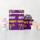 This wrapping paper design features a message like "FIRST-NAME’S 79th BIRTHDAY!", with the "79th" having a faux/imitation gold-like color appearance, and with the name and "BIRTHDAY" in a fun, bold font. The name can be customized, and the background is colored purple. Wrapping paper like this could perhaps be used when wrapping birthday gifts being given to somebody in celebration of their seventy ninth birthday. [~Z0000206]