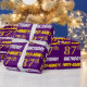This wrapping paper design features a message like "FIRST-NAME’S 87th BIRTHDAY!", with the "87th" having a faux/imitation gold-like color appearance, and with the name and "BIRTHDAY" in a fun, bold font. The name can be customized, and the background is colored purple. Wrapping paper like this could perhaps be used when wrapping birthday gifts being given to somebody in celebration of their eighty seventh birthday. [~Z0000206]