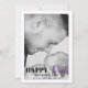 Purple First Father's Day typography Father's Day card. It includes a photo and the text "Happy first Father's Day. The back features a pattern of the text "Best Dad Ever" in purple.