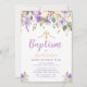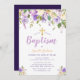 purple floral baptism invitation
