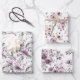 Pretty purple mauve watercolor florals wrapping paper sheets set of three coordinating papers that would be good for birthdays, bridal showers and weddings.